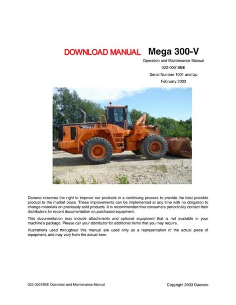 Currently you are looking regarding an Daewoo Doosan Mega 300 V Wheel Loader Service Shop Manual example that we provide here within some kind of document formats many of these as PDF, Doc, Energy Point, as well as images that will make it easier for you to create an Daewoo Doosan Mega 300 V Wheel Loader Service Shop Manual yourself. For a better look, you can open a few examples below. All the examples about Daewoo Doosan Mega 300 V Wheel Loader Service Shop Manual about this site, we get from a number of sources so you may create a better document of your own.